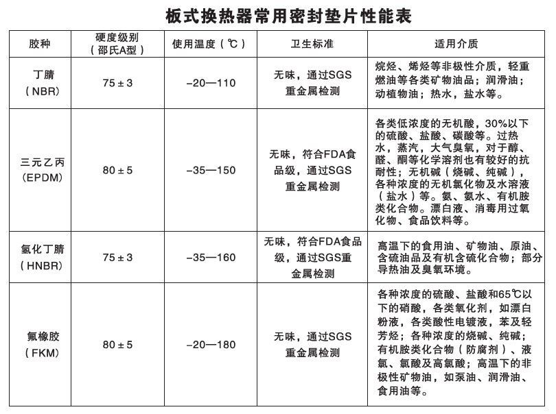 雷曼換熱器墊片材質(zhì)